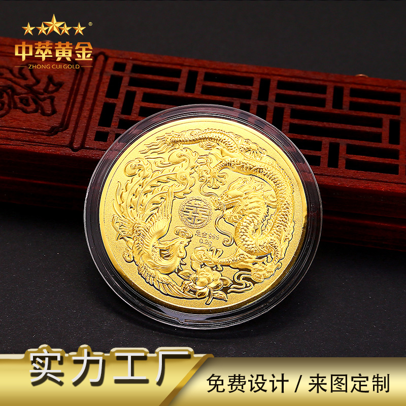 中萃黃(huáng)金(jīn)-龍鳳呈祥紀念章(zhāng)純金(jī¥₽α>n)