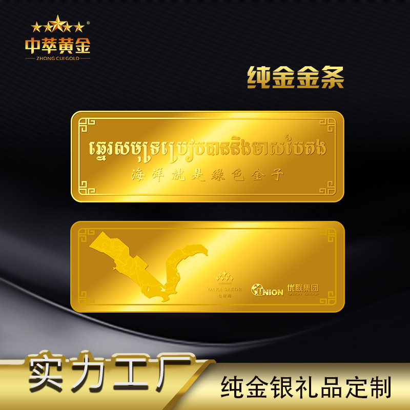 優聯集團金(jīn)條 海(hǎi)洋就(jiù)是(shì)綠(✔✔lǜ)色的(de)金(jīn)子(zǐ)優聯集團金(jīn)條柬埔寨海(hǎi)洋地(d챩)産項目完工(gōng)紀念金(jīn)條定制(zh≥∞ì)