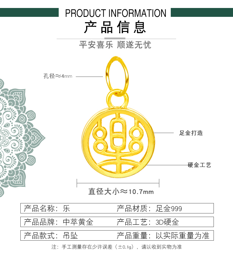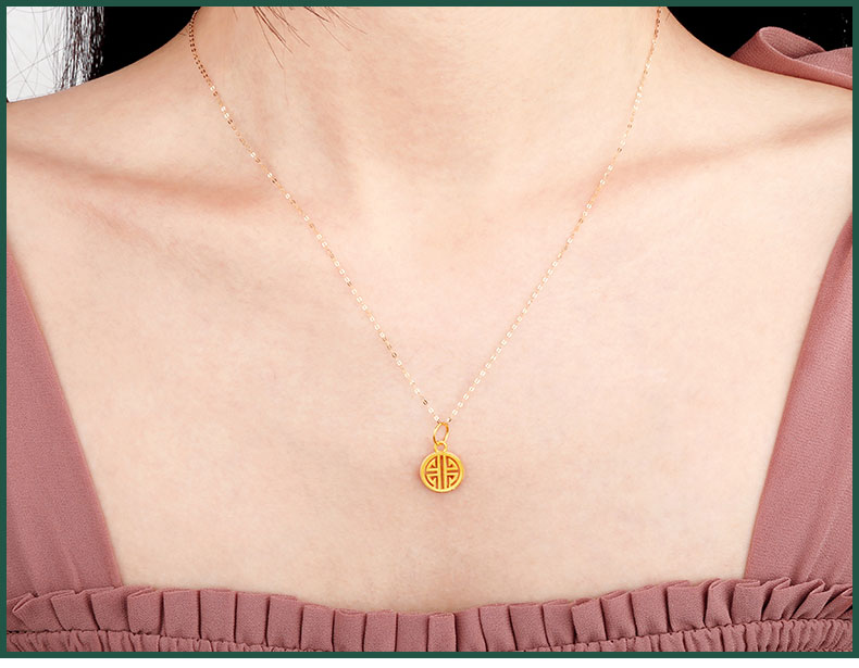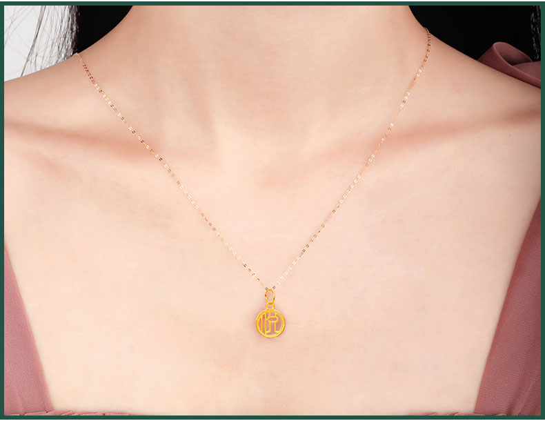 黃(huáng)金(jīn)吊墜圓牌足金(jīn)複古風(fēng)小(x∑•≠iǎo)字牌古法小(xiǎo)福牌3d硬金(jīn)