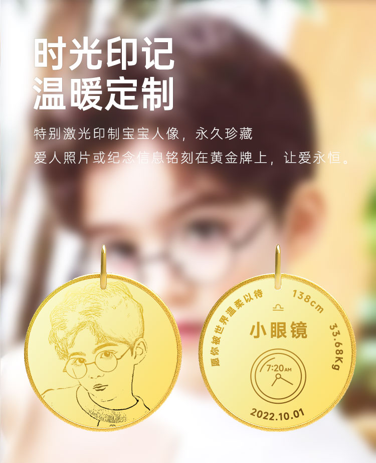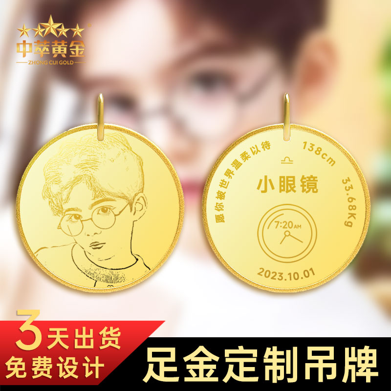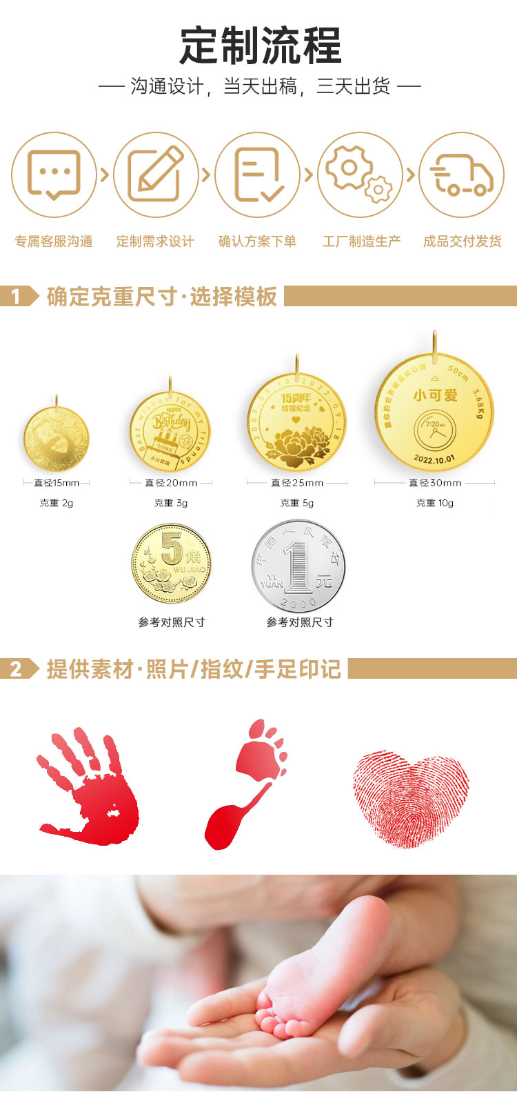 黃(huáng)金(jīn)定制(zhì)金(jīnλ♥)币吊牌寶寶牌出生(shēng)足金(jīn)圓牌吊墜手腳印刻字紀念日(rφασ↔ì)禮物(wù)