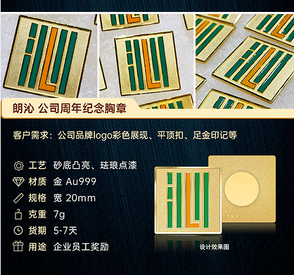 彩印logo琺琅點漆足金(jīn)印記平頂扣✔ 朗沁黃(huáng)金(jīn)胸章(zhāng)定做(zuò)案例