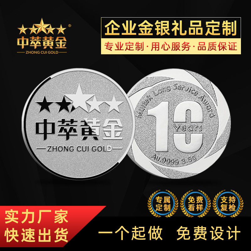 銀(yín)币定制(zhì)純銀(yín)999員(yuán)工(gōn∑€ ≠g)入職退休周年(nián)慶禮品紀念章(zhāng)純金(jīn ÷€)金(jīn)币獎牌定做(zuò)