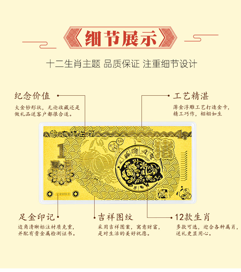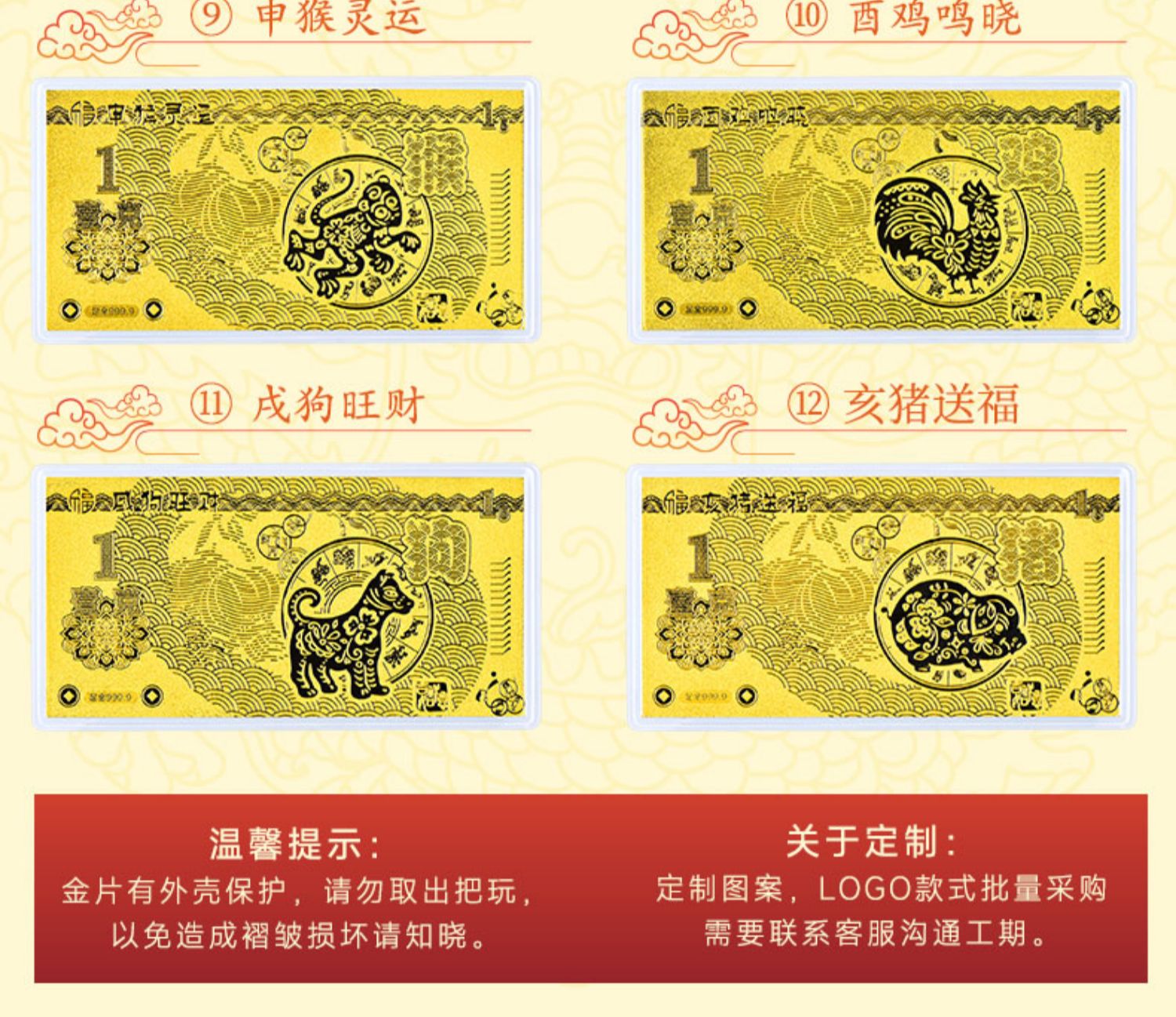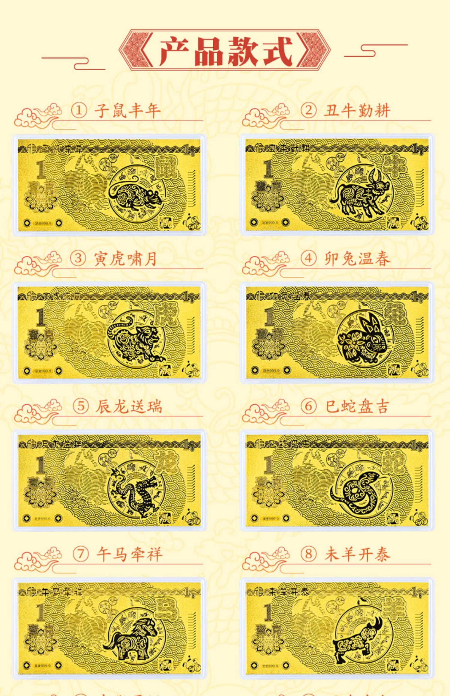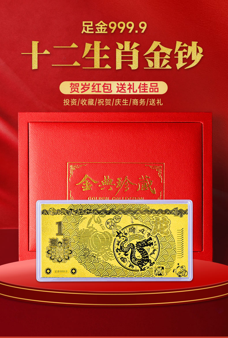 十二生(shēng)肖金(jīn)鈔定制(zhì)✔金(jīn)币紅(hóng)包建行(xíng)壓歲生(shēng)日(rì★₽)黃(huáng)金(jīn)1克足金(jīn)紀念金(jīn)鈔龍年(↕$nián)