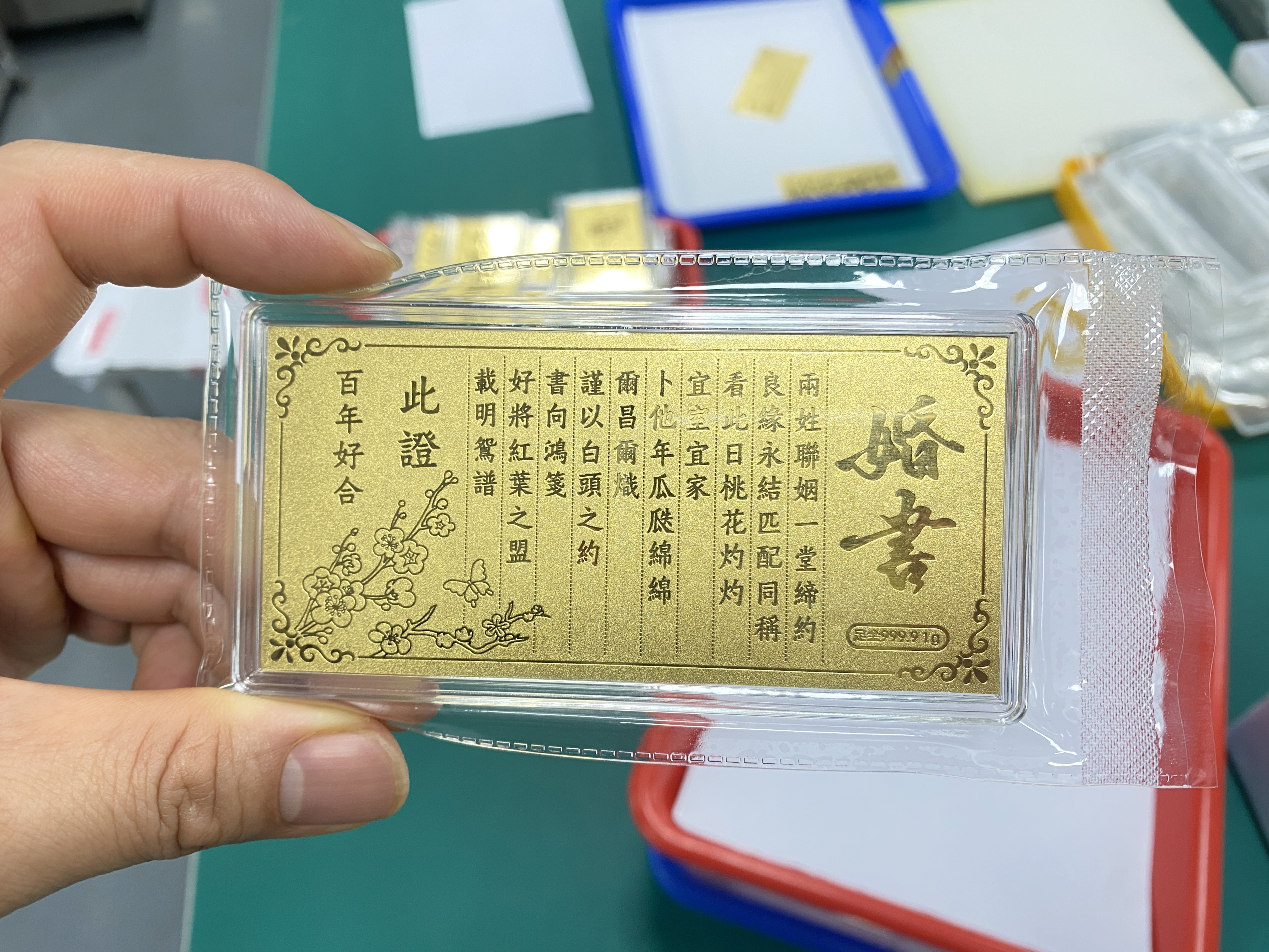 婚書(shū)黃(huáng)金(jīn)足金(jīn)1克9999↕→₽金(jīn)卡定制(zhì)