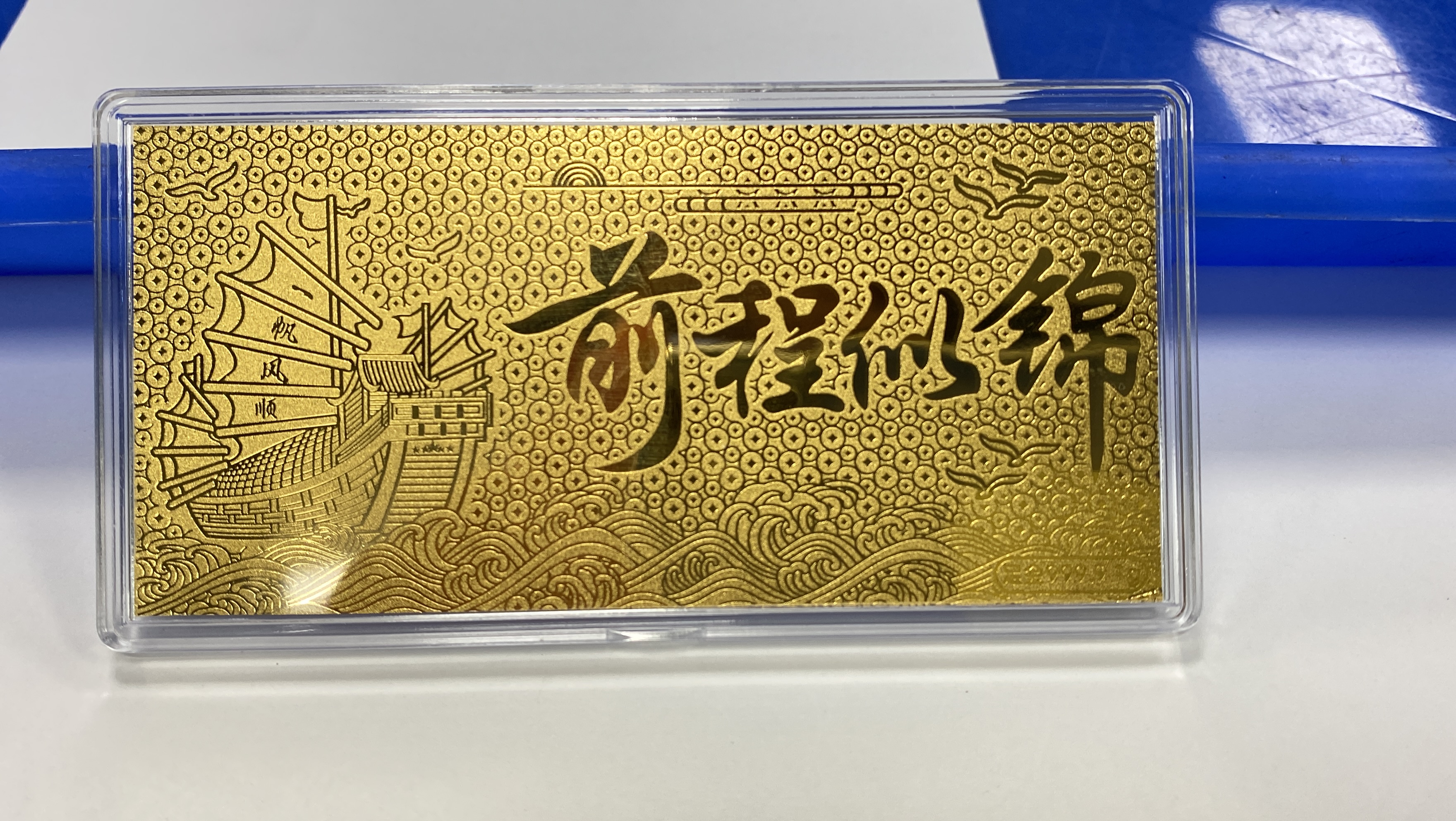 前程似錦金(jīn)鈔定制(zhì)1g足金(jīn)9999黃(huáng₩σ)金(jīn)禮品定制(zhì)廠(chǎng)家(jiā)水(σ₹shuǐ)貝黃(huáng)金(jīn)工(gōngπ✘)廠(chǎng)
