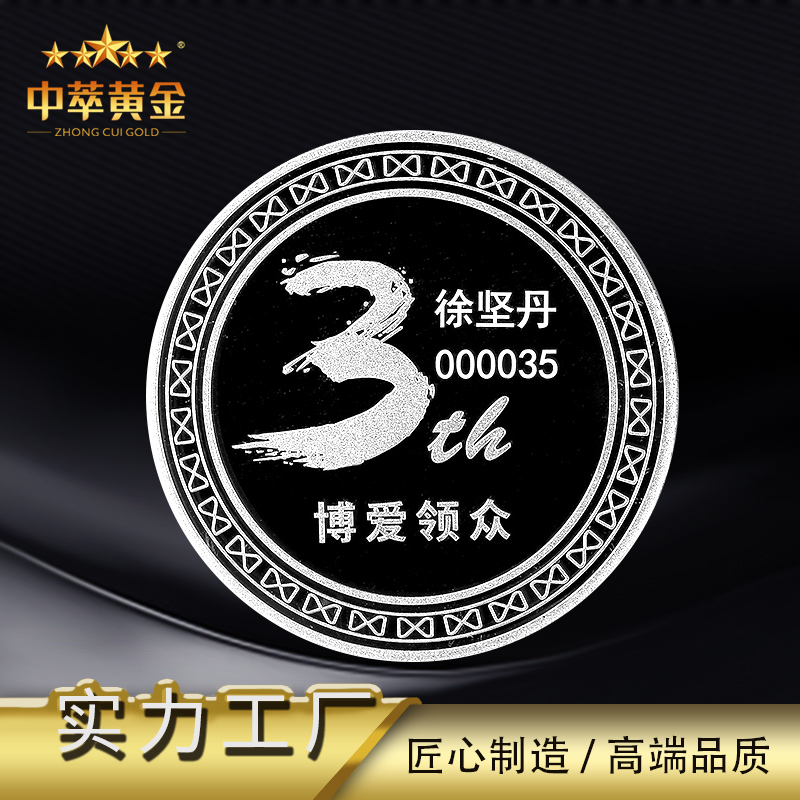 純銀(yín)紀念章(zhāng)币定制(zhì)3周年(ni'€án)慶銀(yín)币禮品定做(zuò)