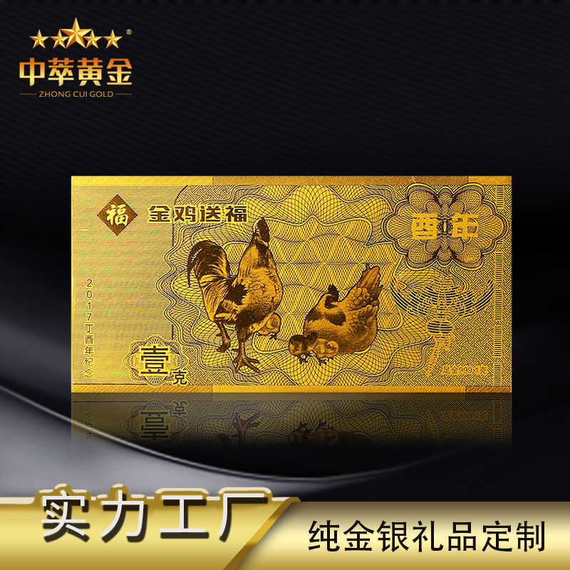 金(jīn)雞送福紀念鈔1克金(jīn)鈔廠(chǎnφε←g)家(jiā)定做(zuò)