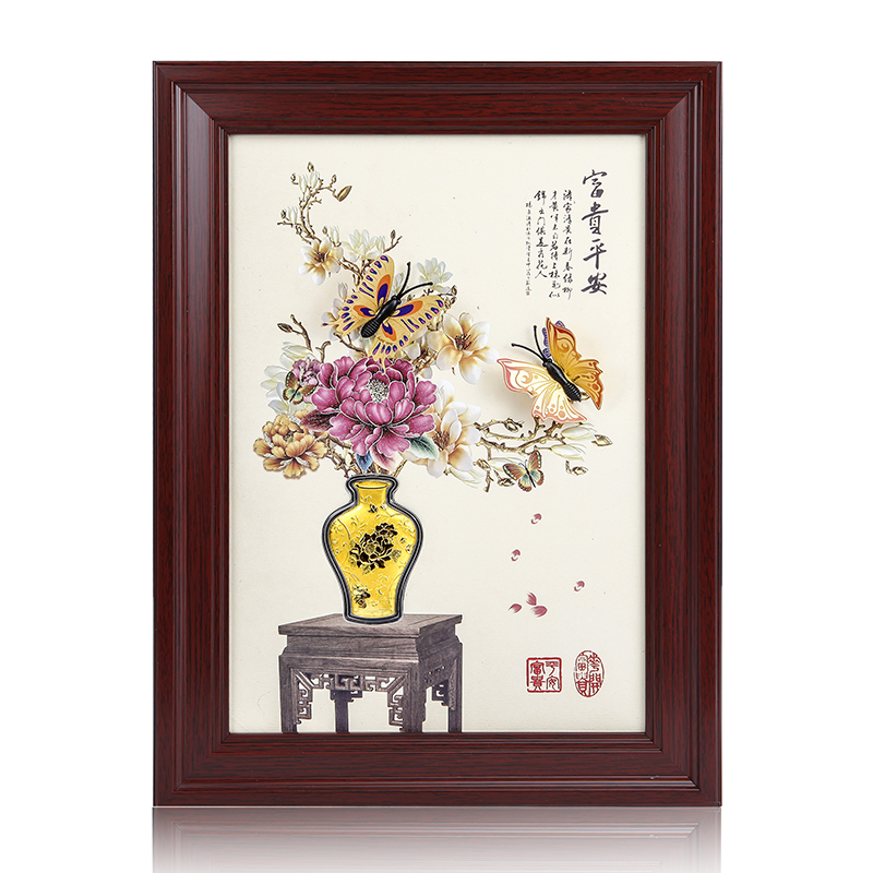 999純金(jīn)富貴平安裝飾框畫(huà) 足金(jīn)花(h☆ uā)瓶桌面擺件(jiàn) 銀(yín)行(x✔✔≠¥íng)保險禮品工(gōng)藝畫(huà)